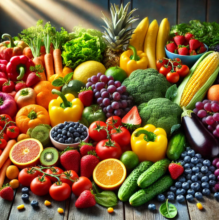 🔴 Rot – z. B. Tomaten oder Erdbeeren enthalten Lycopin und Anthocyane, die dein Herz schützen. 🟠 Orange – wie Karotten oder Kürbis sind reich an Beta-Carotin für deine Augen und Haut. 🟡 Gelb – Paprika oder Mais liefern viel Vitamin C und stärken dein Immunsystem. 🟢 Grün – Brokkoli, Spinat & Co. sind voll mit Chlorophyll, Magnesium und Eisen für mehr Energie. 🔵🟣 Blau/Violett – Blaubeeren, Rotkohl und Auberginen enthalten Antioxidantien, die deine Zellen schützen.